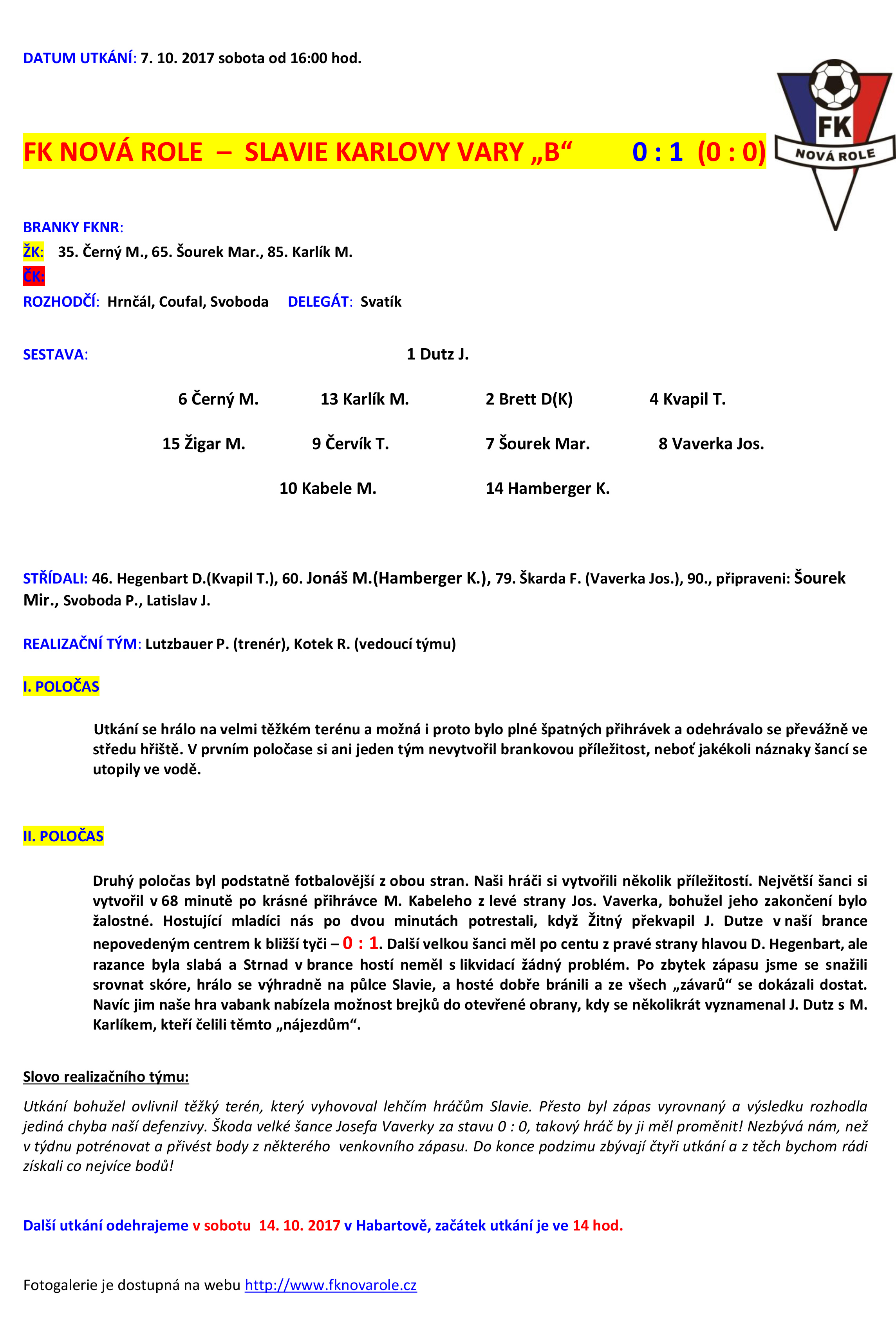 | Místo utkání: | Nová Role |