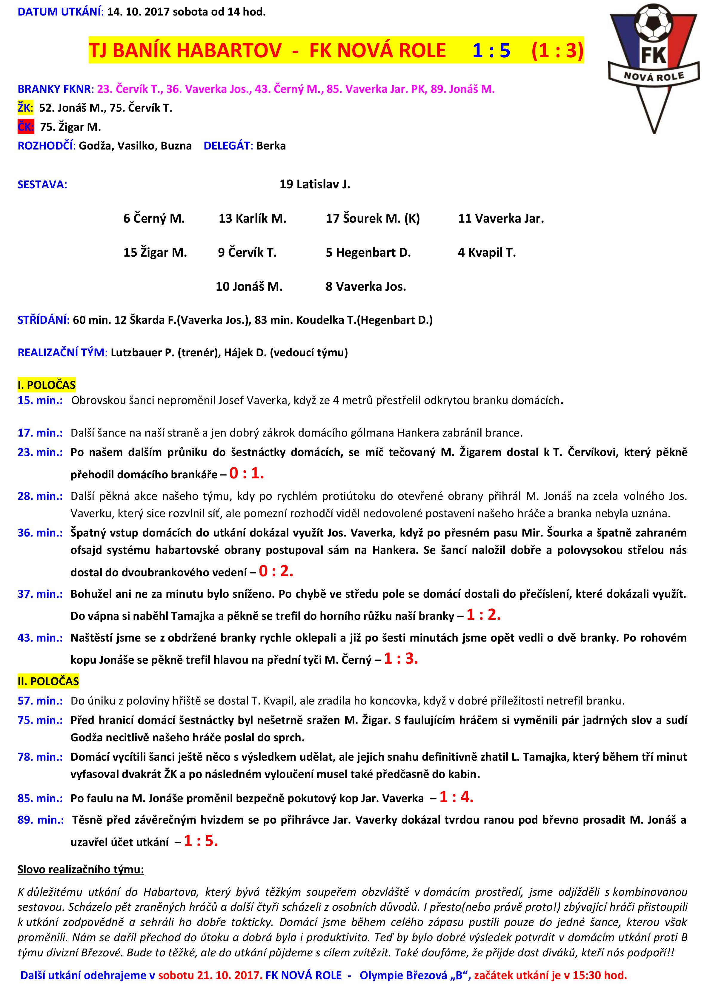 | 12. | FK Olympie Březová "B" | 13 | 15:38 | 10 |