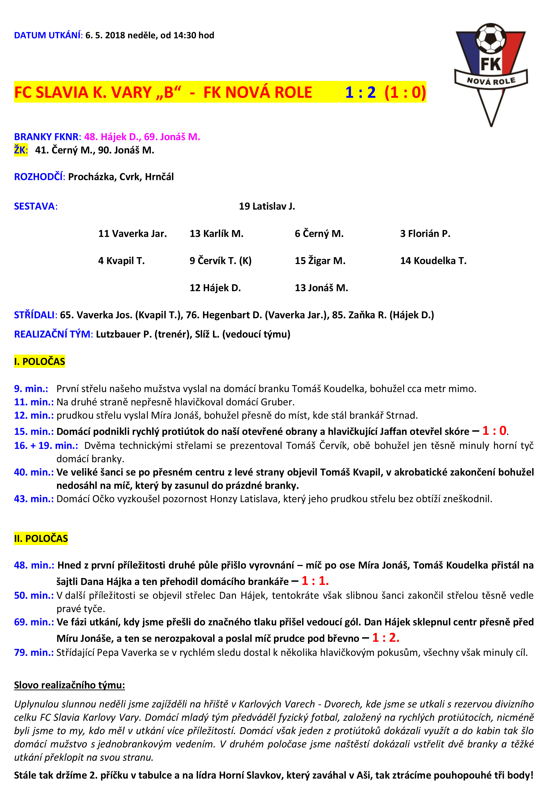 | 9. | FK Nová Role | 13 | 32:36 | 16 |