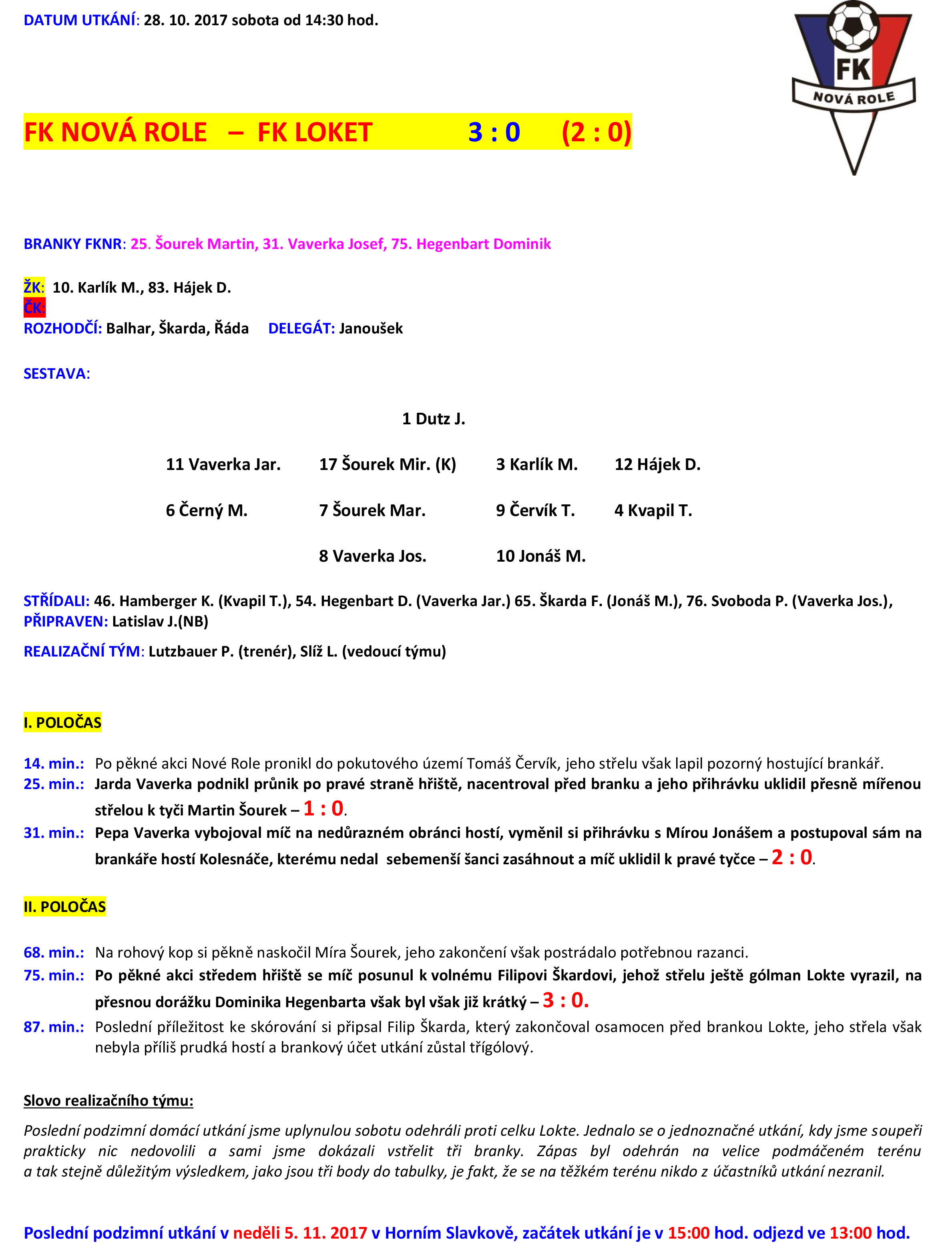 V posledním domácím utkání  podzimu jsme zvítězili: FKNR  -  FK LOKET  3 - 0